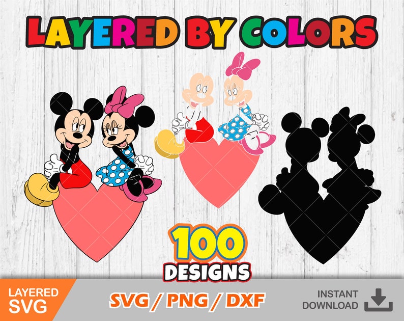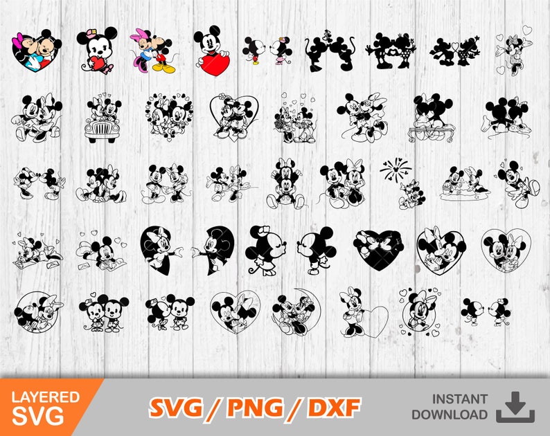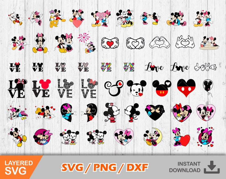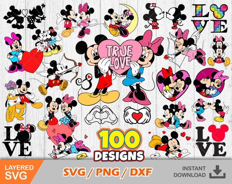 Mickey and Minnie Valentine's Day 100 Cliparts Set, Valentines Day Svg, Cut Files for Cricut, Digital Download