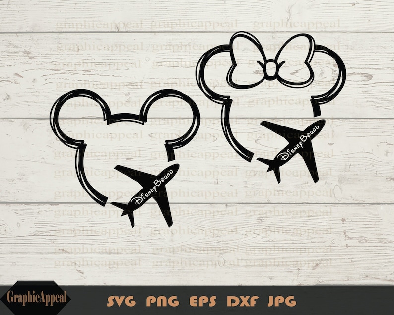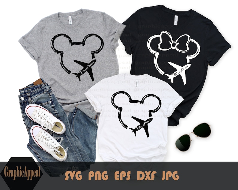 Mickey Mouse Outline Svg, Family Trip Svg, Mouse Ears with Airplane, Digital Download